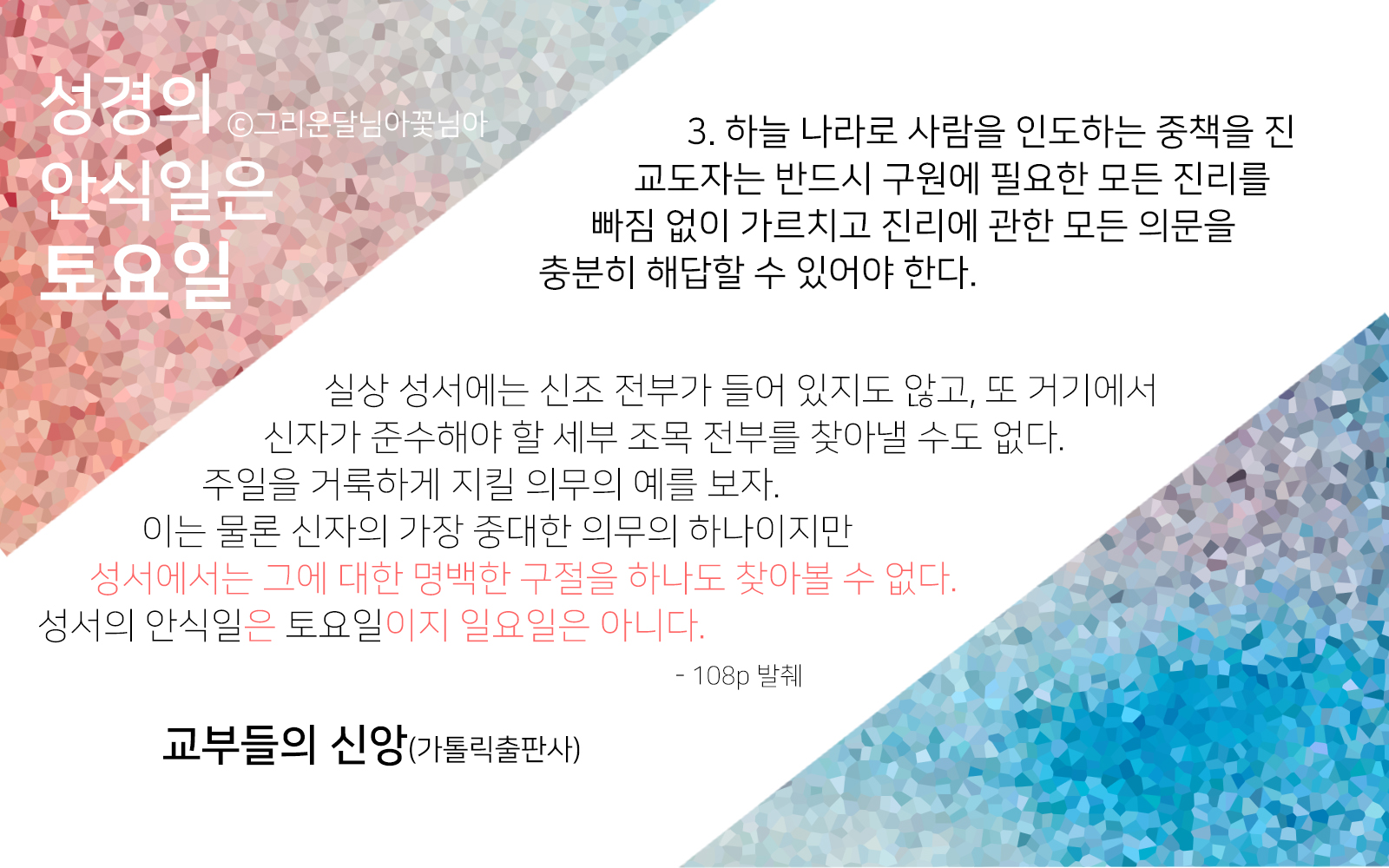 그래서 하나님의교회는 성경의 가르침대로 새언약 안식일을 지킵니다^^