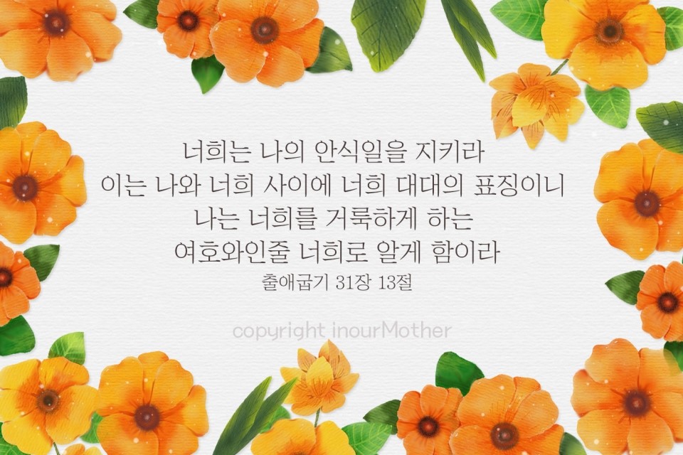 안상홍님의 가르침에 따라 새언약 안식일을 소중히 지킵니다.^^