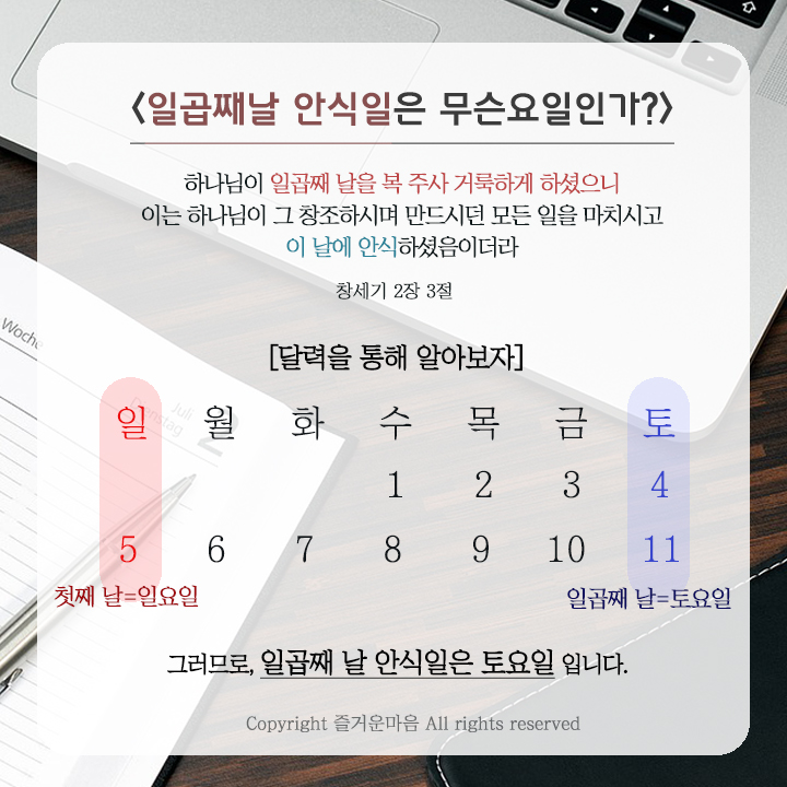 성경은 안식일이 일곱째날이라고 증거합니다.(창2장1절)