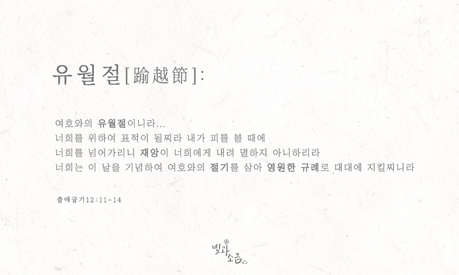 구약 당시에는 유월절을 지킴으로 이스라엘 백성들이 애굽의 노예생활에서 해방받아